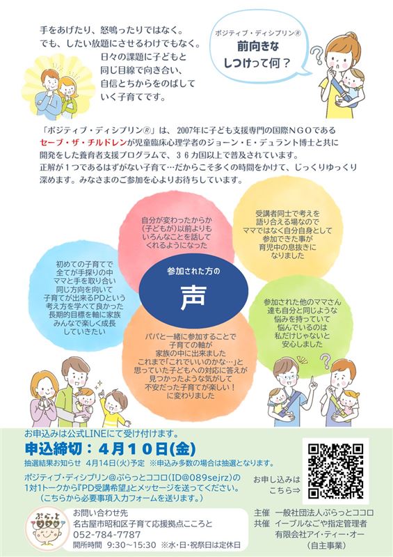 ポジティブ・ディシプリン用のLINEにてお申込みください。