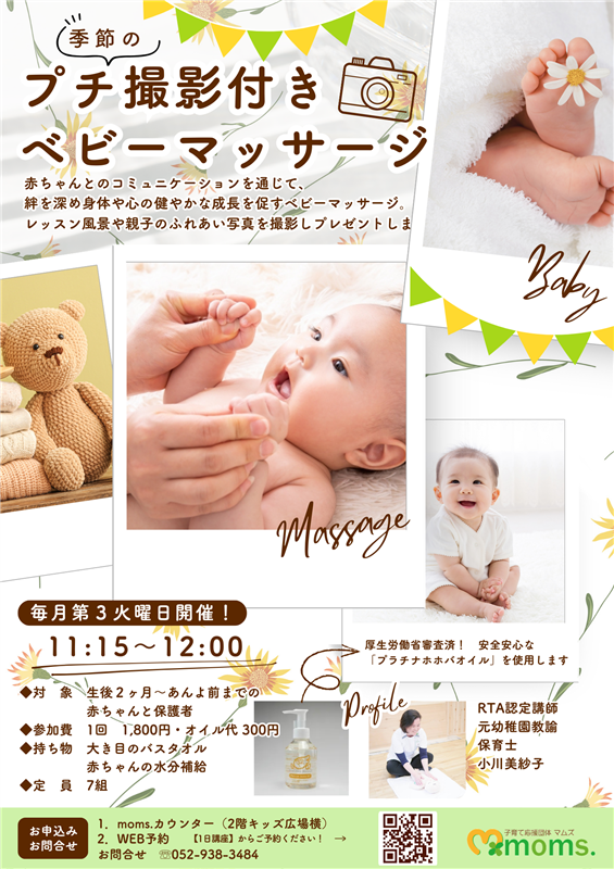 【moms.】4月 プチ撮影付き ベビーマッサージ