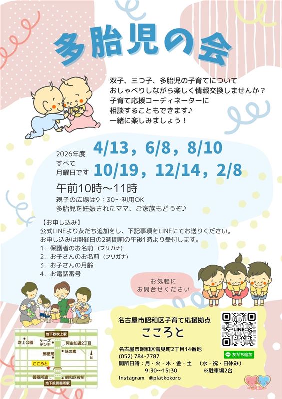 双子、三つ子、多胎児の子育てについて、おしゃべりしながら楽しく情報交換しませんか?