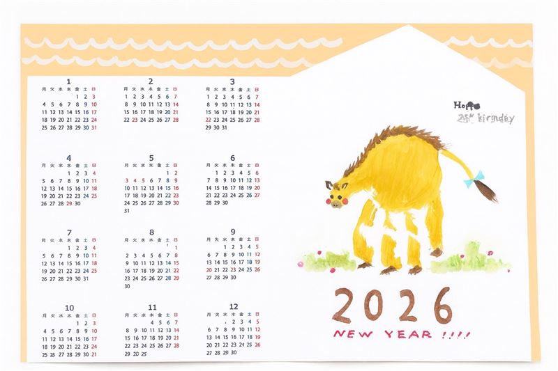手形を2026年干支の馬に見立て、世界にひとつのオリジナルカレンダーを作りましょう。