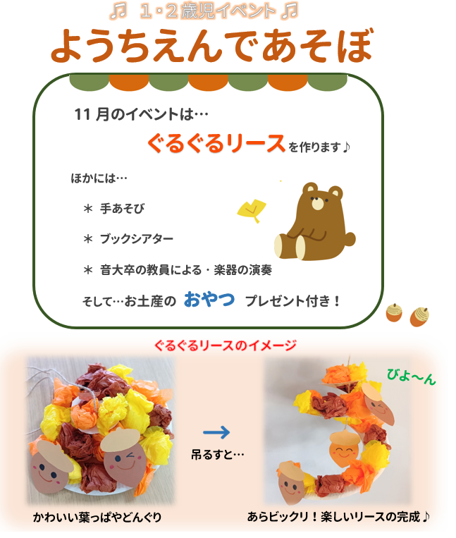 音楽幼稚園 1・2歳児イベント『ようちえんであそぼ!』ぐるぐるリース作り(南部)
