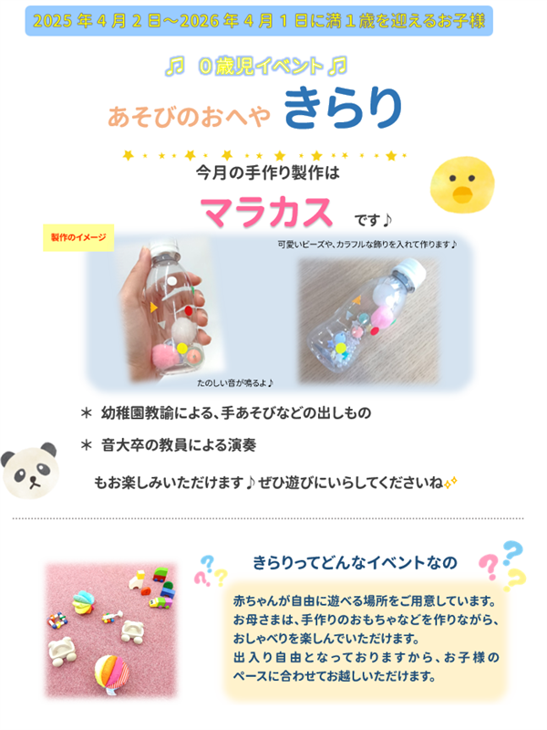 0歳児【2025年4月2日~2026年4月1日に満1歳を迎えるお子さま】と