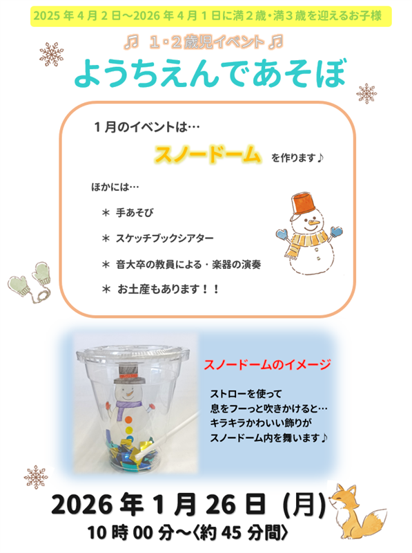 音楽幼稚園 1・2歳児イベント『ようちえんであそぼ!』スノードーム(南部)