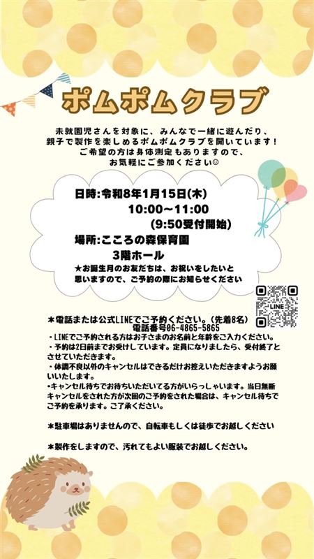 ・たくさんの方に来ていただきたいので、ポムポムクラブに初めて来られる方の枠をとらせていただきます。ご了承ください。