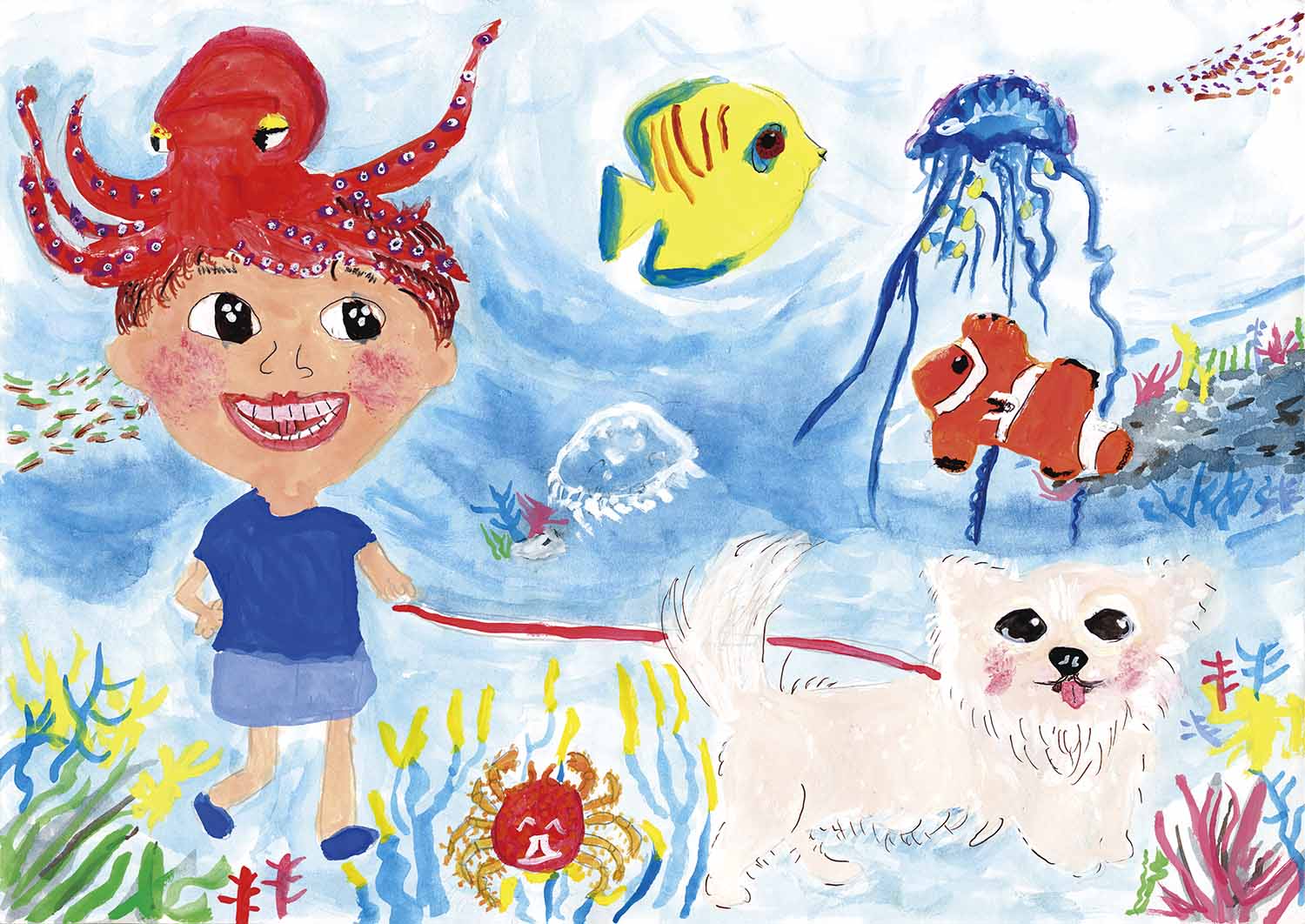 「だいすきないぬのこむぎとうみのなかをおさんぽ」 |