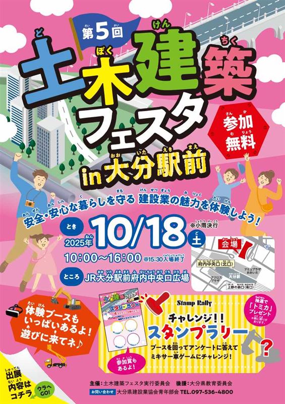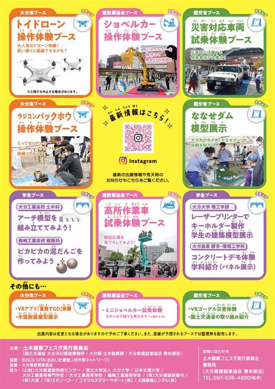 【主 催】土木建築フェスタ実行委員会(大分県建設業協会青年部会/大分県土木建築部/九州地方整備局大分河川国道事務所)
