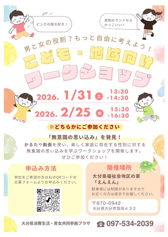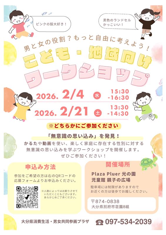 男女が共に働きやすい社会の実現に向け、女性活躍が進まない背景に存在している固定的な性別役割分担意識や無意識の思い込み(アンコンシャス・バイアス)を解消するため、地域の子どもや大人を対象にしてワークショップを開催します。